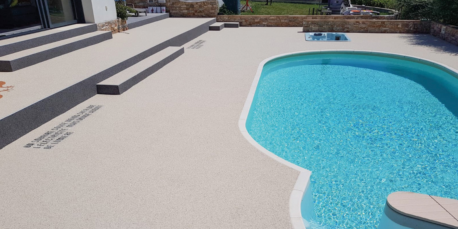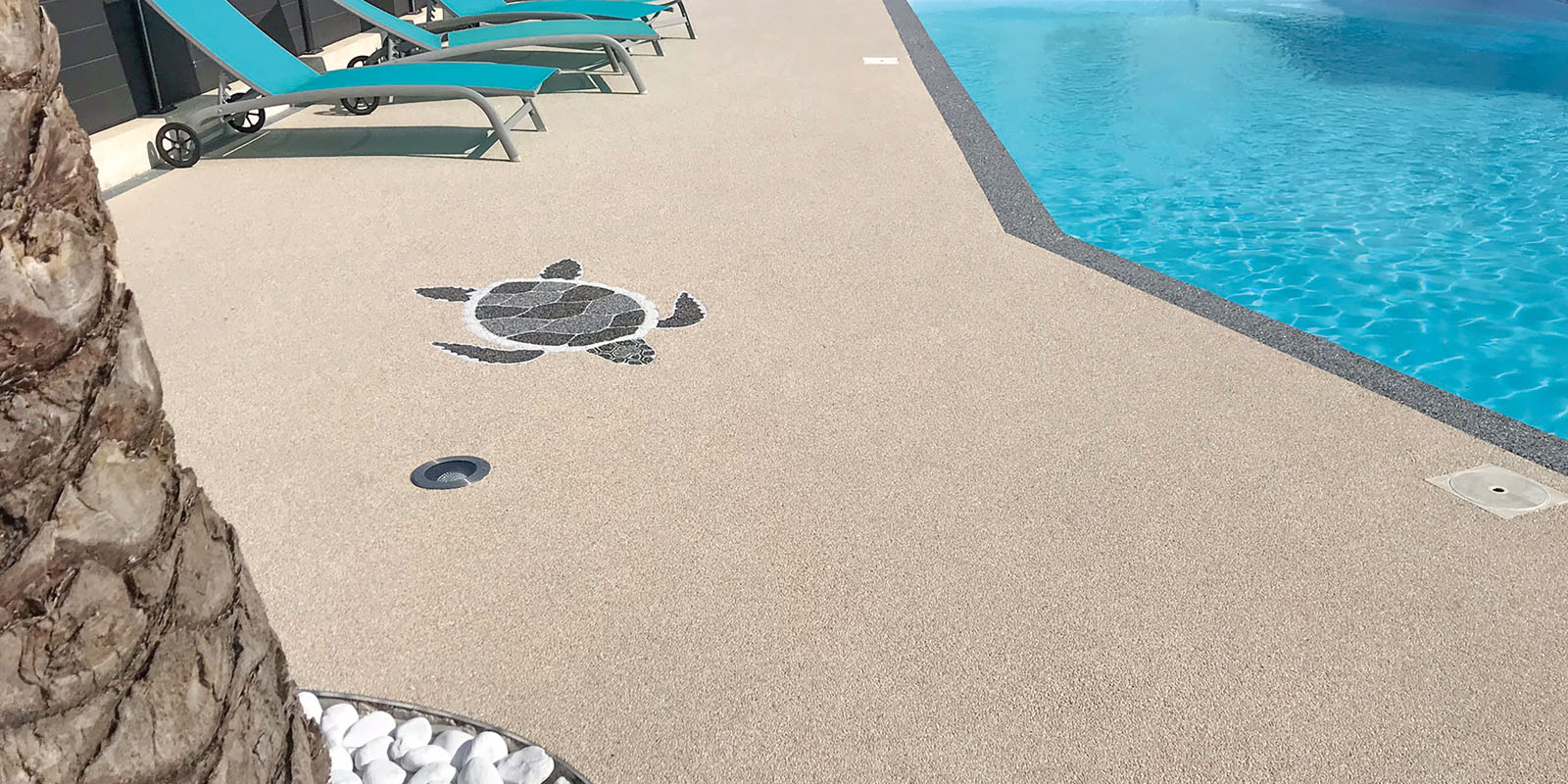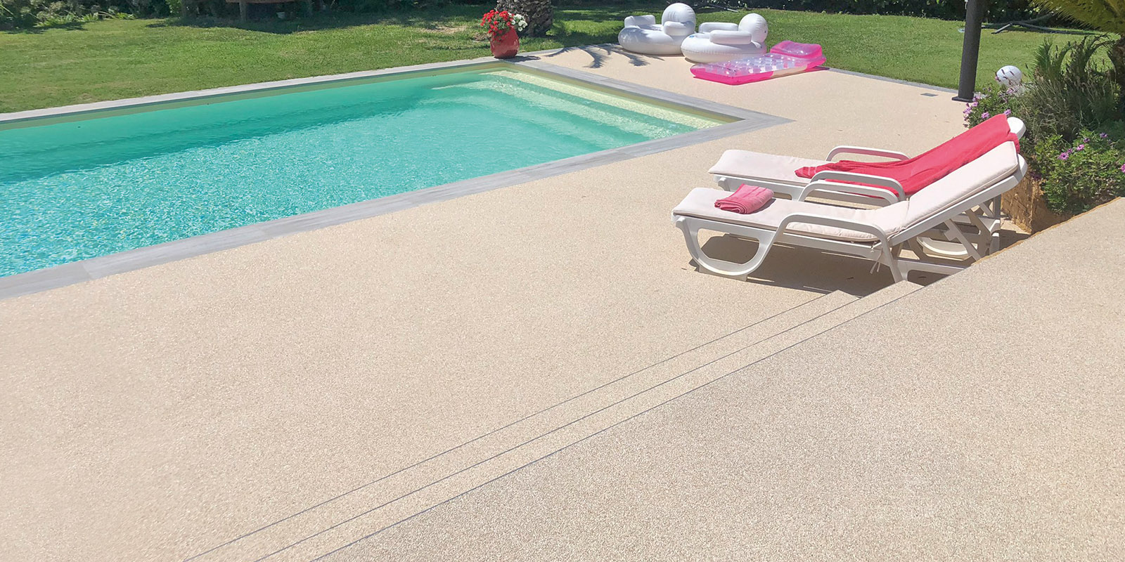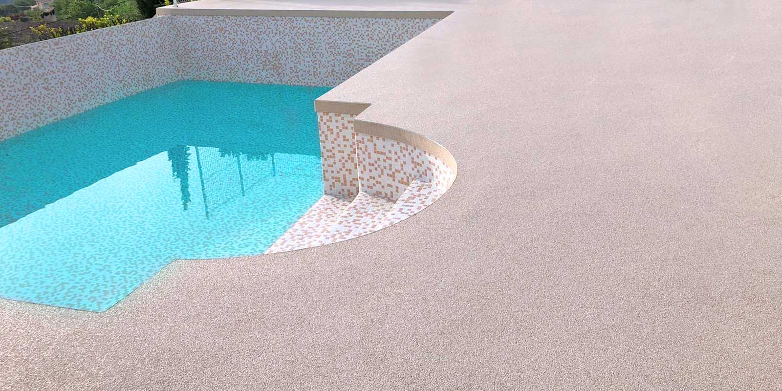 de revêtement en résine, intérieur décoratif, industriel, extérieur et piscine.
